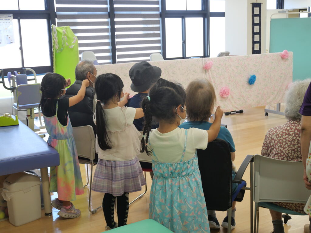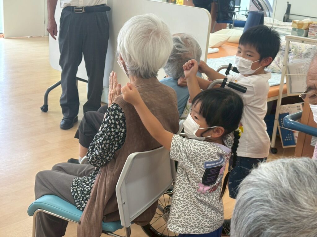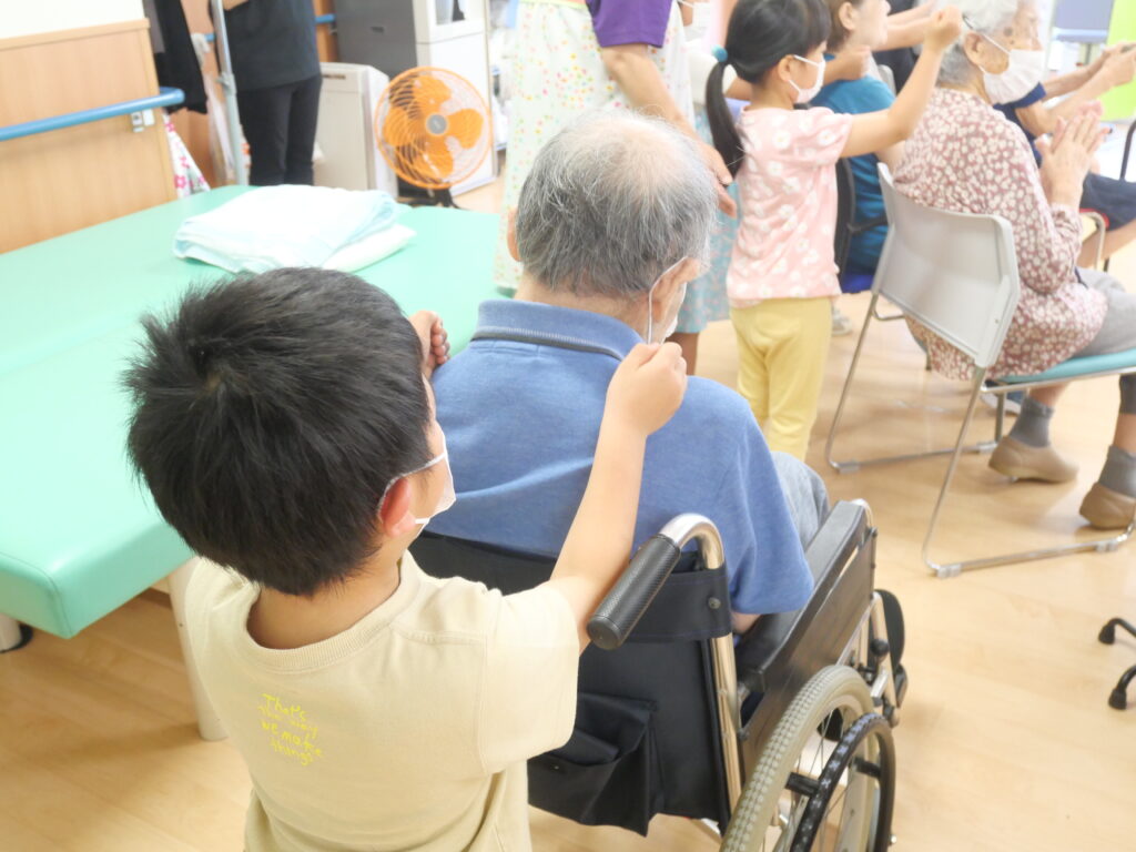 歌に合わせて、とんとんたたくと高齢者の方から