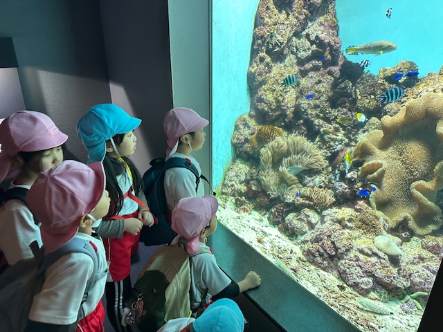 大潮黒水槽では、ジンベエザメのえさを見学できました✨