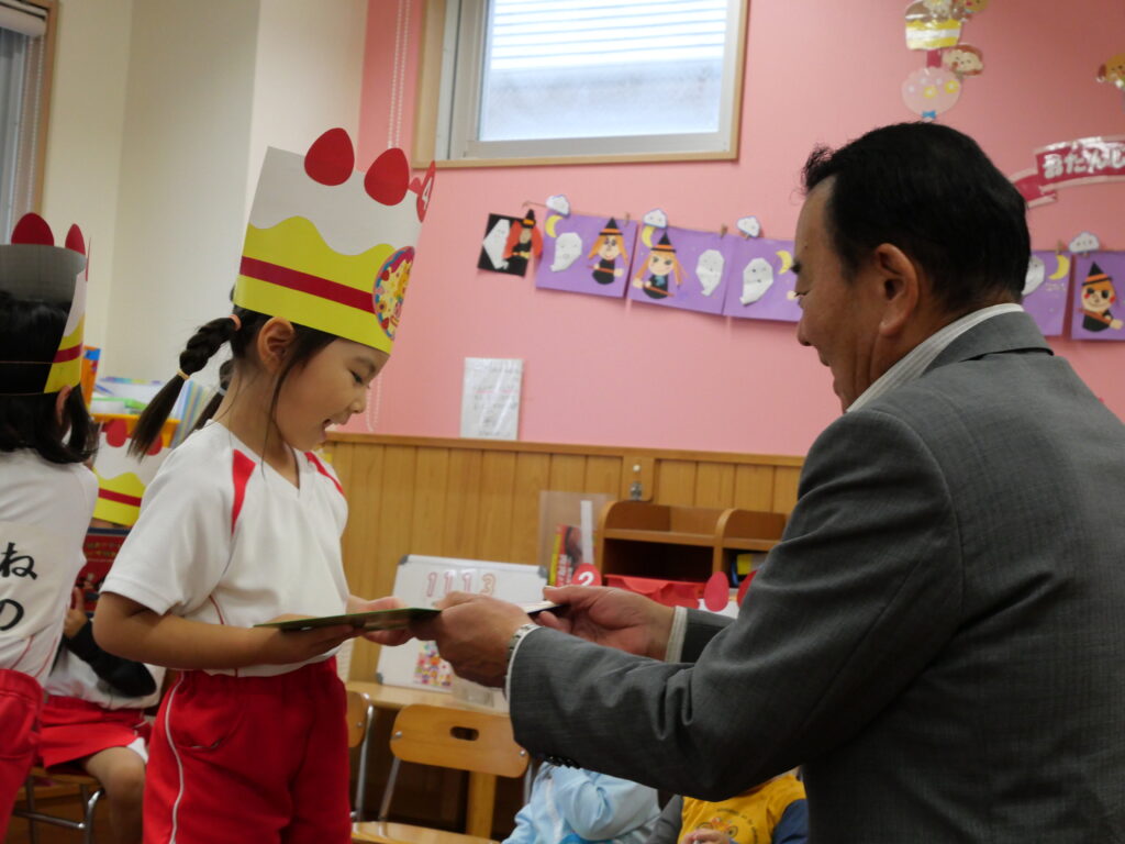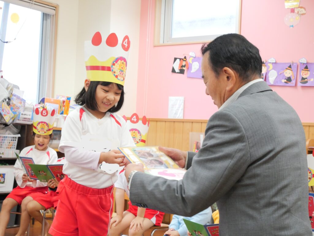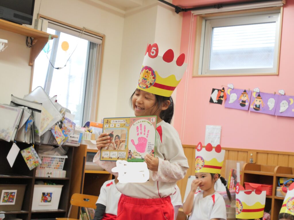ドキドキしながらもしっかりと上手に言うことができましたよ♪園長先生からも誕生ブックをもらい、嬉しそうな