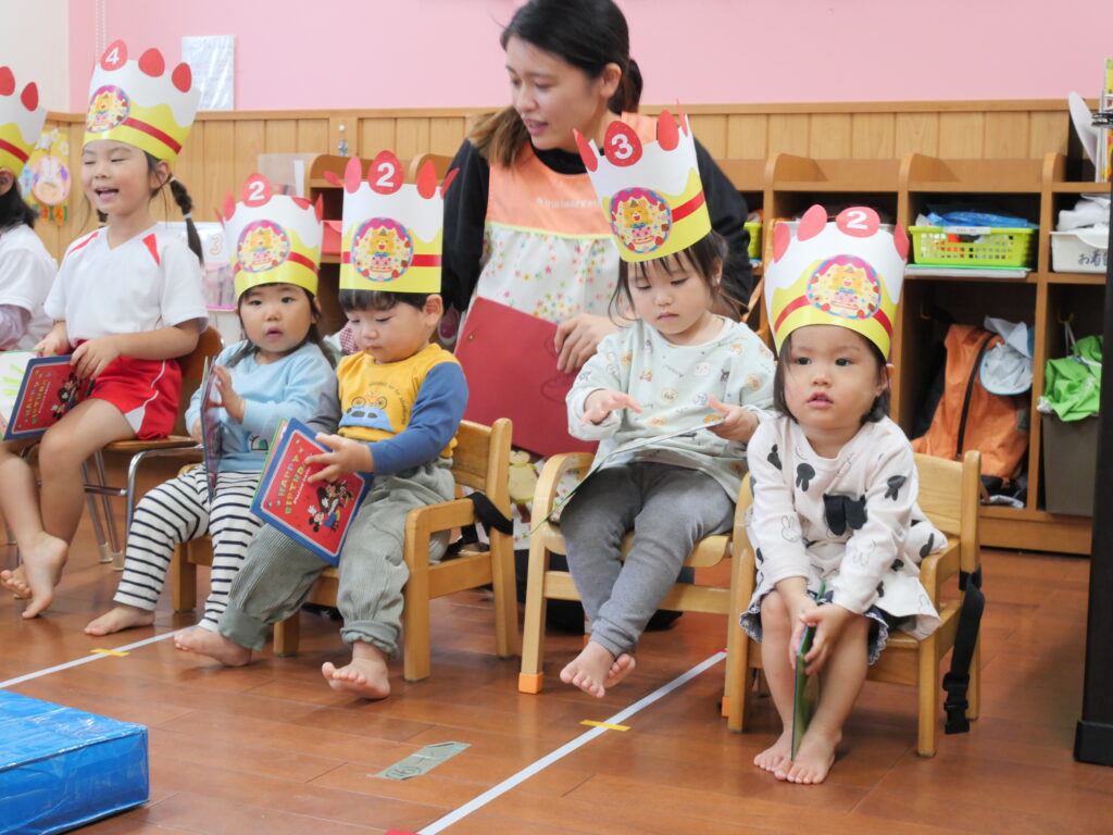 未満児のお友だちも園長先生から、誕生ブックをもらい「なんだこれは?」と気になっているようでした!