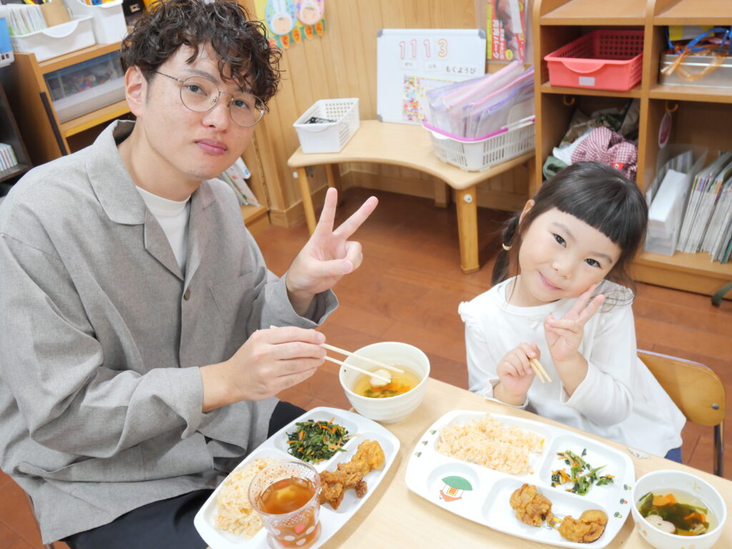 一緒に給食を食べました😋子どもたちの嬉しそうなお顔、堪らないですね💕💕